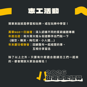 ✹ 2026 街遊志工報名表 ✹ https://forms.gle/R6H1xrDSZyDCq9KC8 👈